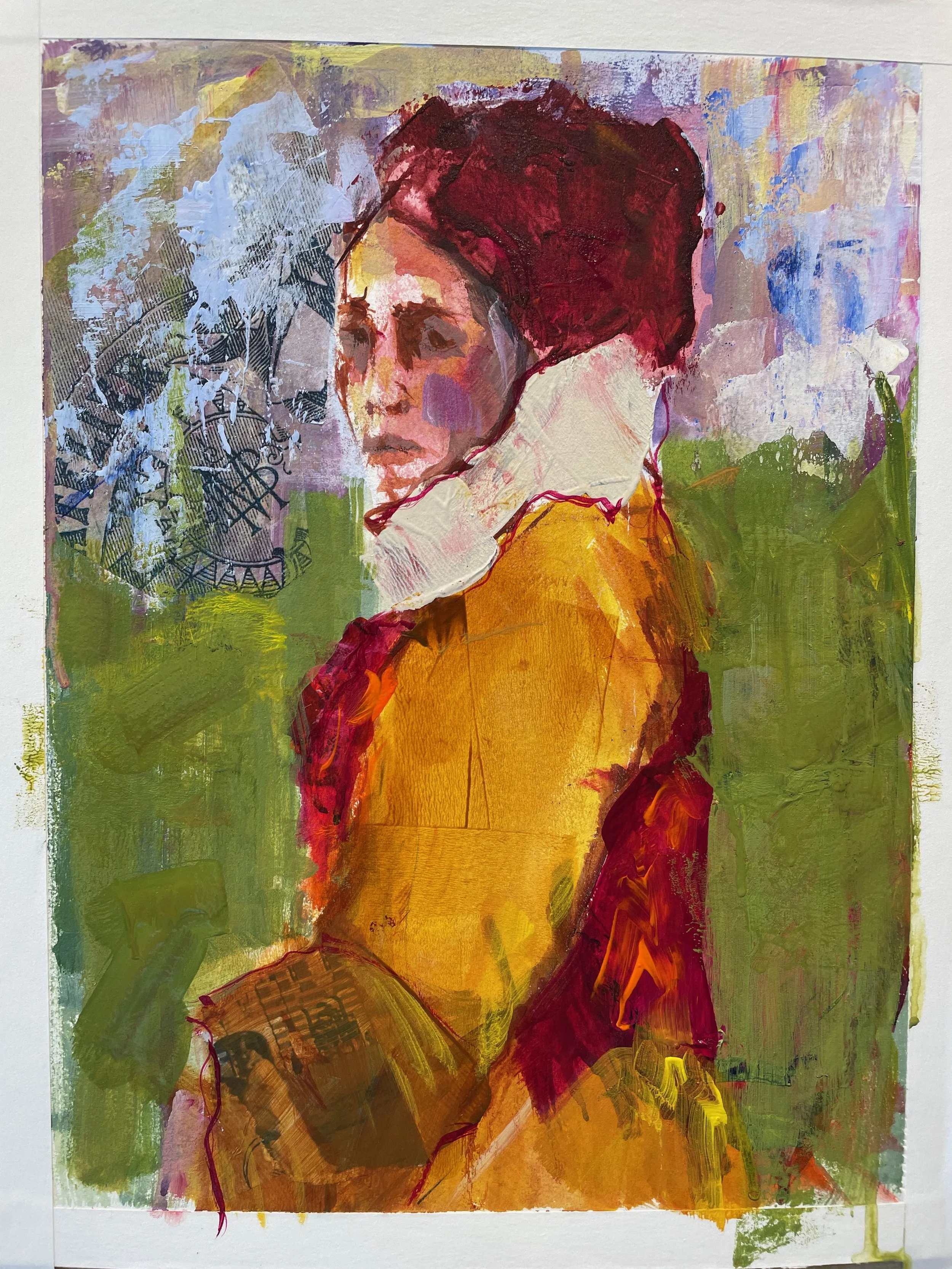 Much of my inspiration has come from the black and white photographs my grandfather took on a trip around the world in the early 1920’s. Those images are family history to me—they’re a connection to another time and to people I’ll never meet but feel deeply linked to. When I paint them, I honor my grandfather, the people in his photographs, and the idea that we all have a place and a voice in the world.